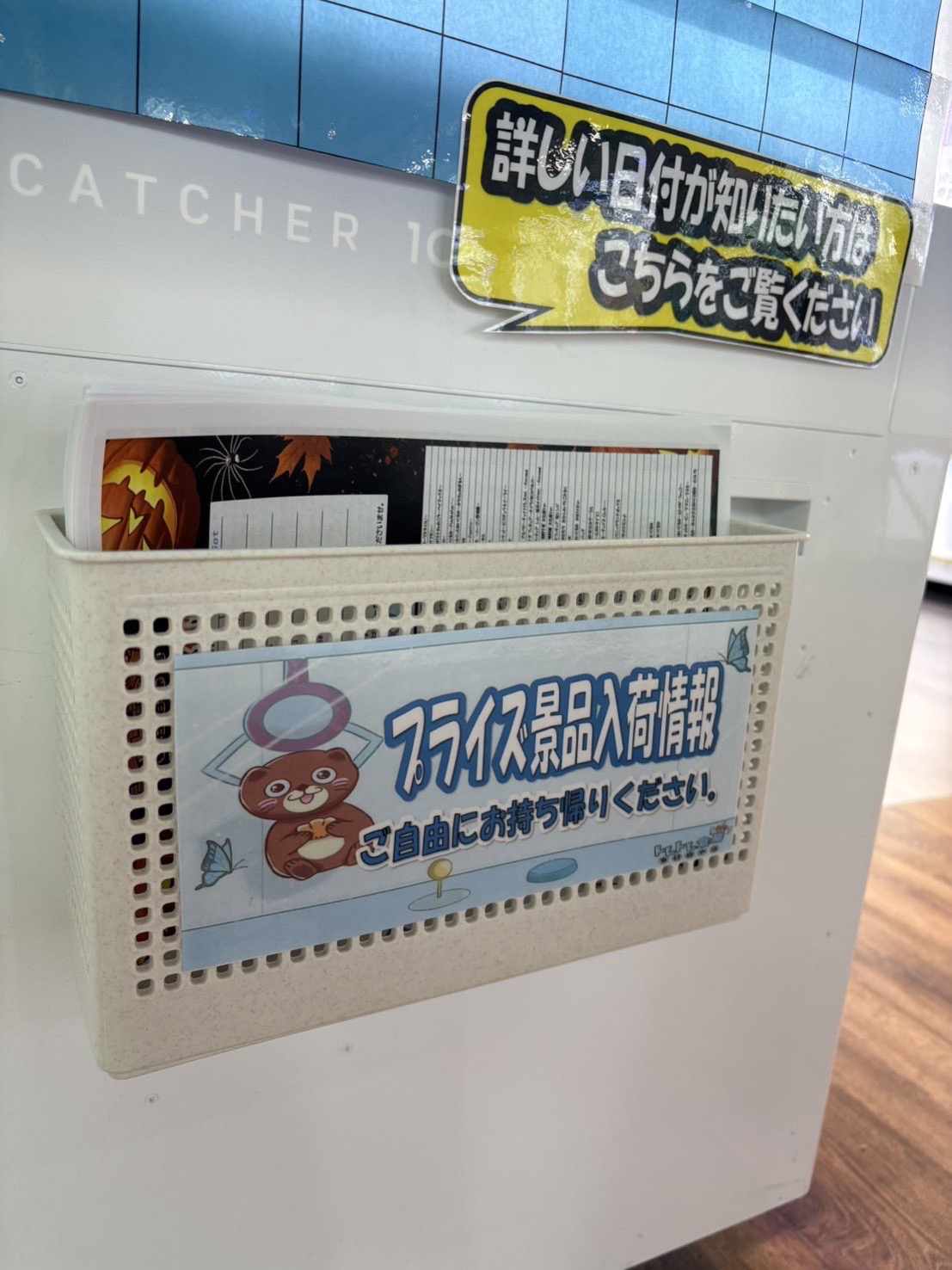 店内3ヶ所に当店のプライズ入荷チェック表をご用意しています