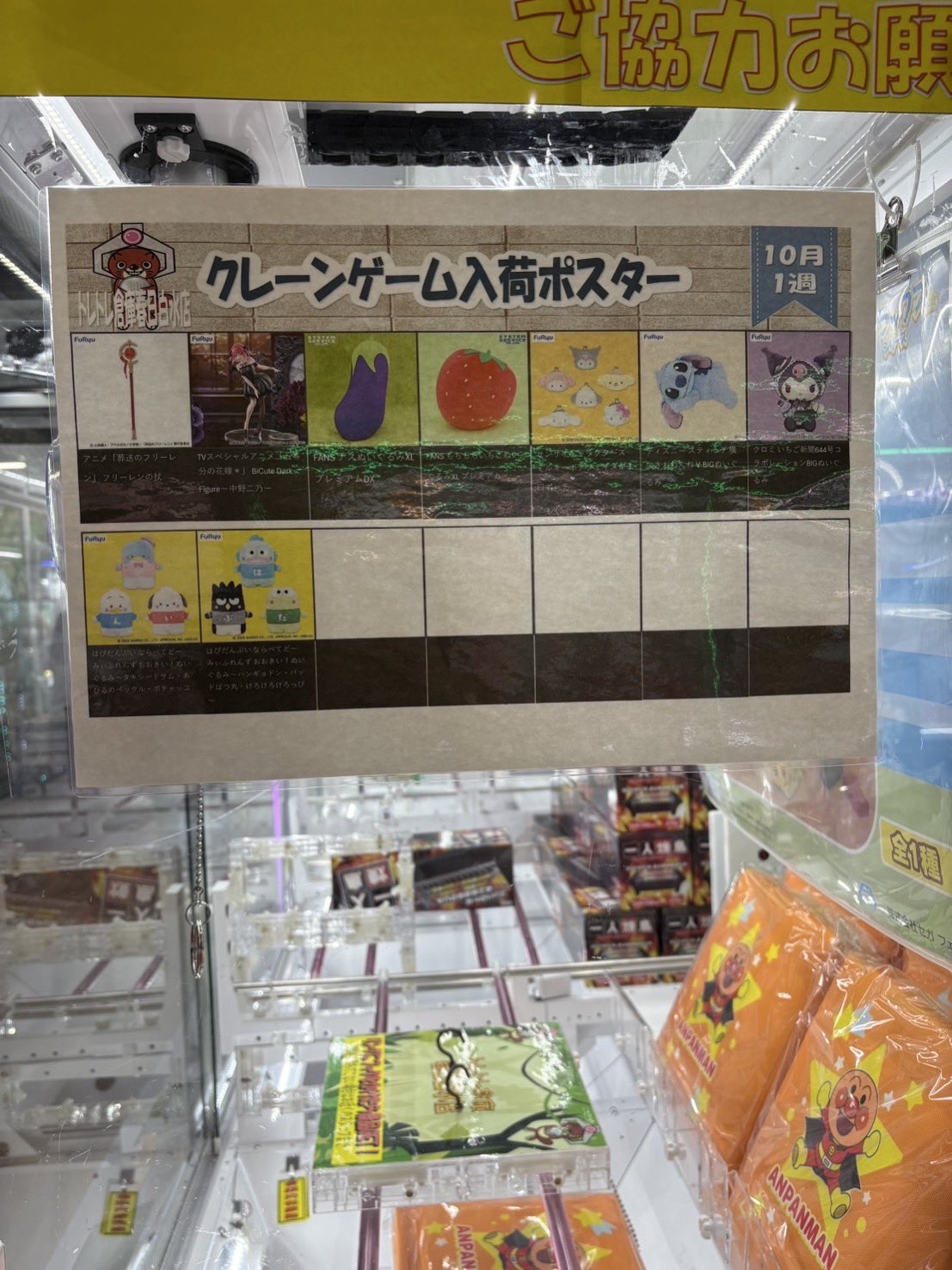 今週の店の入荷表です#UFOキャッチャー #クレーンゲーム #春日市 アミューズ 2025年10月1日 🎃今週の店の入荷表です👻 大人気のフィギュアやかわいいぬいぐるみが沢山入荷予定です ぜひ遊びに来てくださいね♥ (入荷、完売情報ポストにはタイムラグがありますご了承ください) 確実な在庫状況をお知りになりたい場合は恐れ入りますが、お電話にてお問い合わせください 【↓混み合っている場合繋がりにくい事もあります】 📲092-558-9700 各SNSはバナーをタップ!