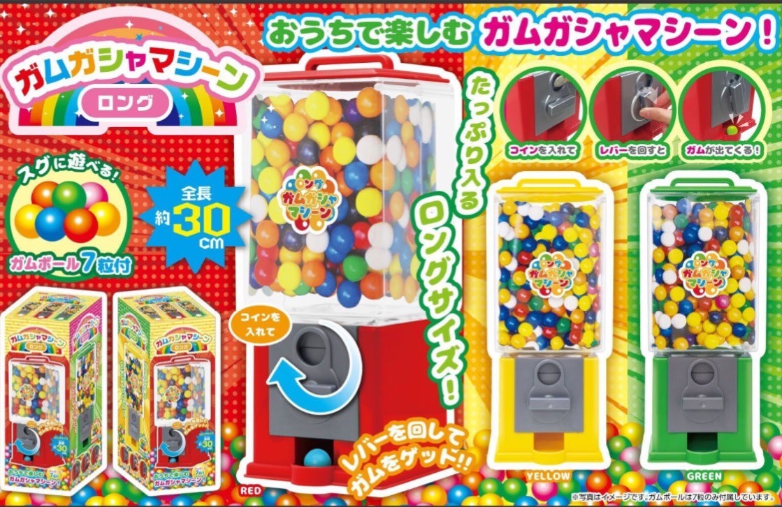 ガシャガシャマシーンロング登場ʕ•ᴥ•ʔすぐに遊べるガムボール7個付き🟡🔵🟠🔴⚪️🟢🟣