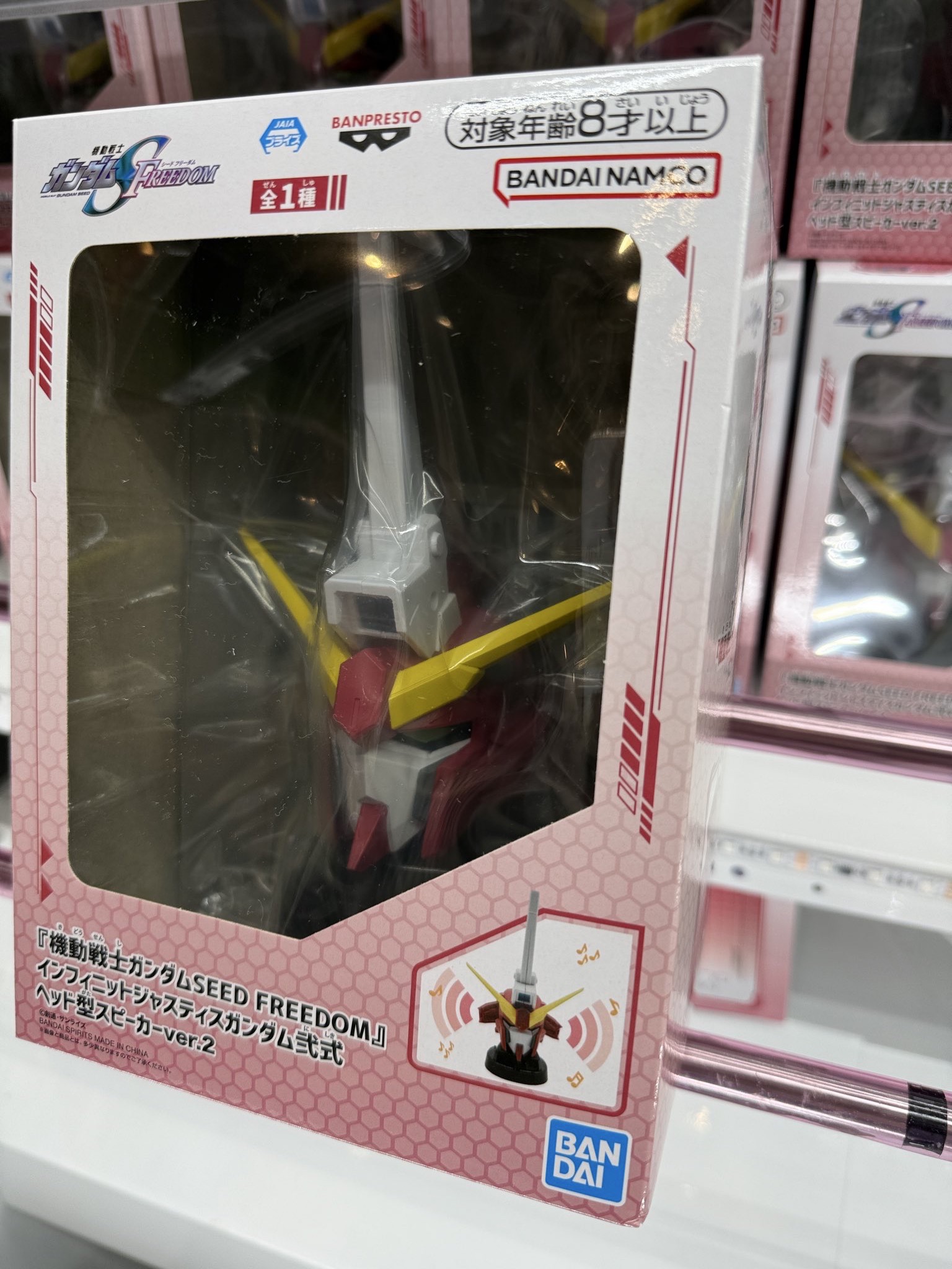 さらに、同月登場の 『機動戦士ガンダムSEED FREEDOM』 インフィニットジャスティスガンダム弐式ヘッド型スピーカーver.2(別売)をディスプレイ可能!