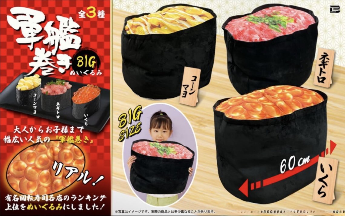 回転寿司でお子様から大人に大人気の軍艦ベスト3のビックぬいぐるみです(ˆ꜆ . ̫ . ) ꜆ ⌒ ♡