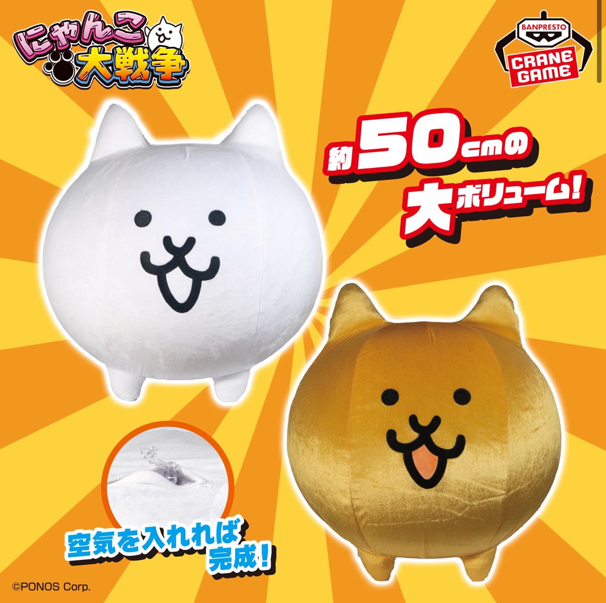 『にゃんこ大戦争』から、中のビニールボールに空気を入れてふくらませると超ビッグサイズになるネコ、金ネコが登場!約50cm