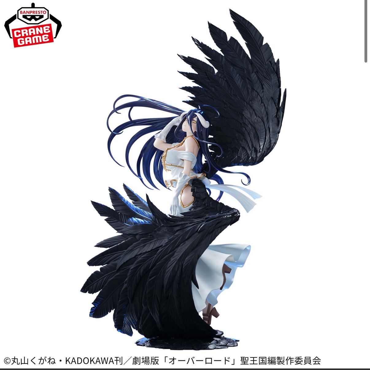 守護者総括の名にふさわしい気高く美しい姿を、躍動感あふれる造形で表現しました。漆黒の大きな翼は、まるでその場で舞い上がるかのように螺旋を描き、純白のドレスと絶妙なコントラストを成しています。また髪の流れ、翼の羽根一枚一枚、足元に散る羽根のディテールに至るまで、細部にこだわり抜いた造形は、「BANPRESTO EVOLVE」の名に恥じない圧巻の仕上がりです。
