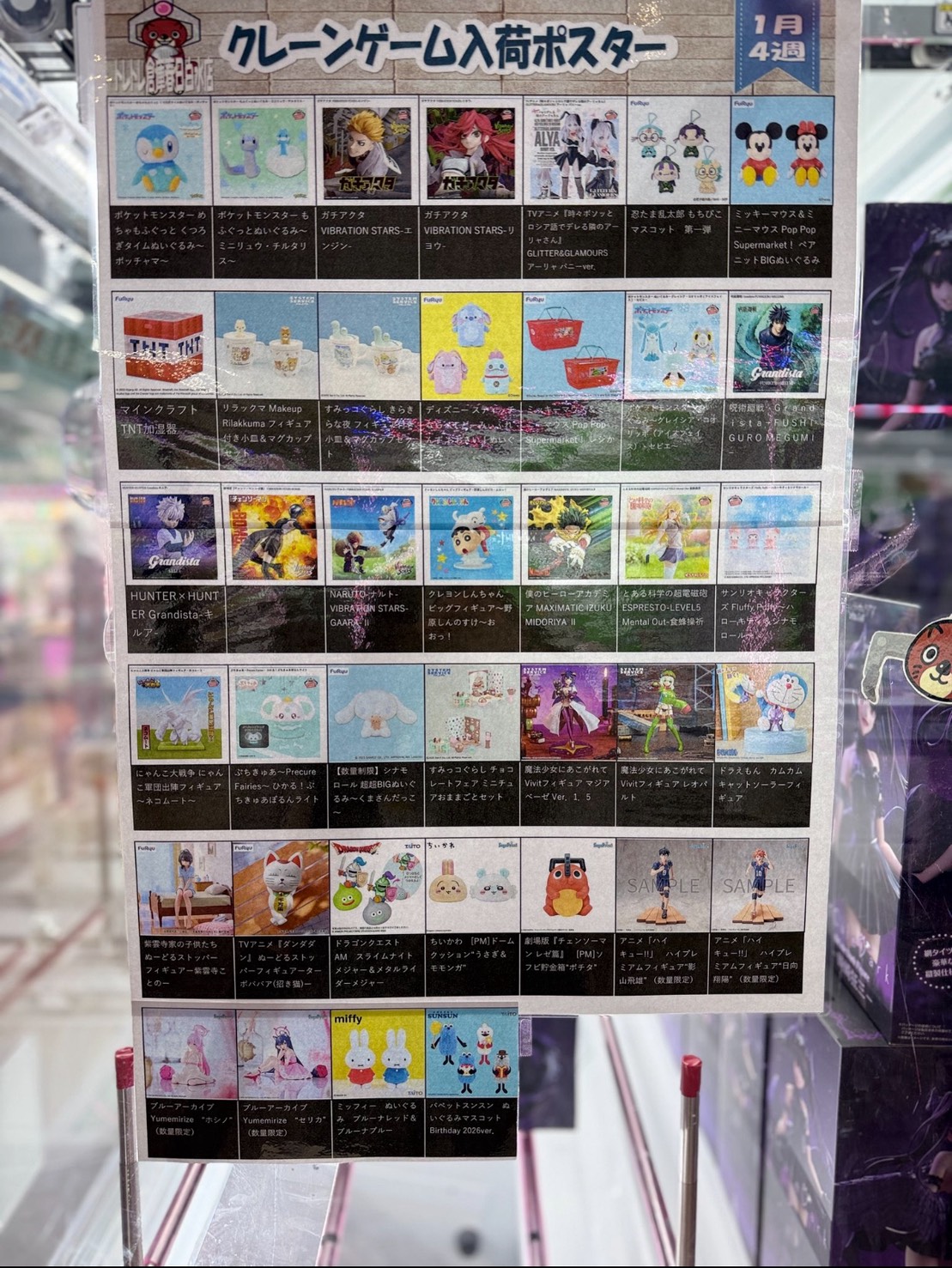 今週の当店の入荷表です♪#UFOキャッチャー #クレーンゲーム #春日市 アミューズ 2026年1月20日 今週の当店の入荷表です♪ 大人気のフィギュアやかわいいぬいぐるみが沢山入荷予定です! ぜひ遊びに来てくださいね(入荷、完売情報ポストにはタイムラグがありますご了承ください) 確実な在庫状況をお知りになりたい場合は恐れ入りますが、お電話にてお問い合わせくださいませ 【↓混み合っている場合繋がりにくい事もあります】 092-558-9700 各SNSはバナーをタップ!