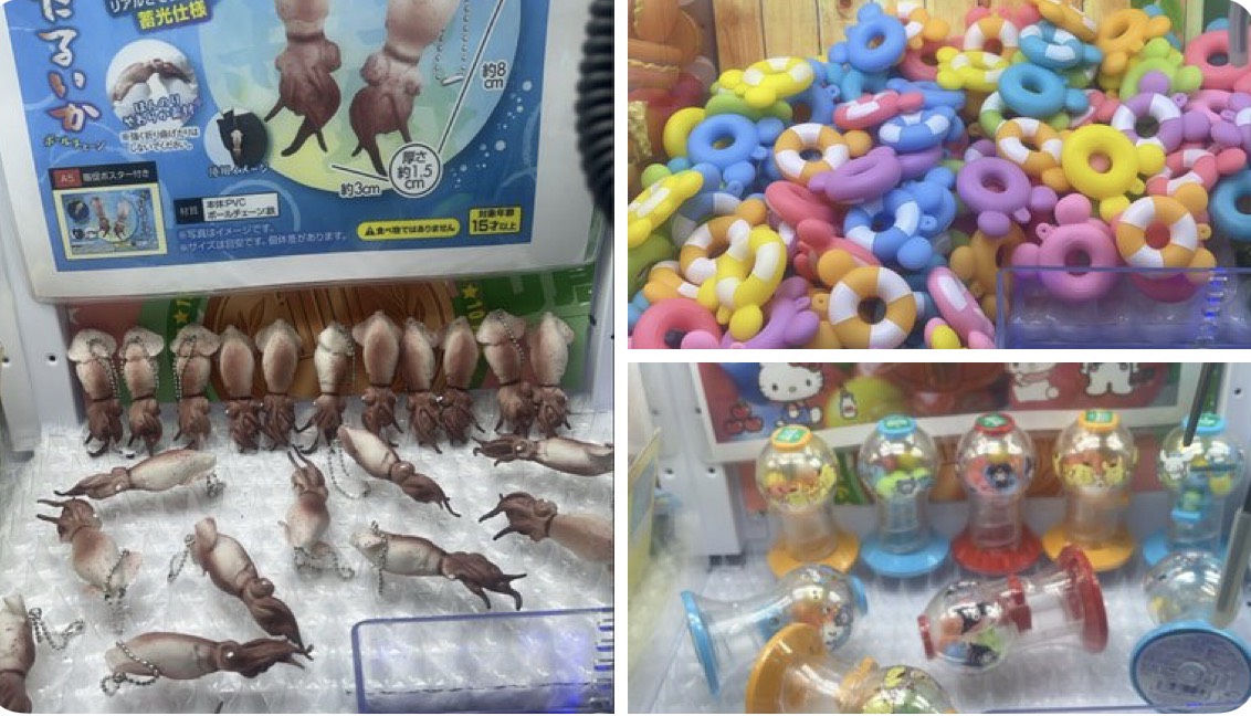 何度来ても景品がコロコロ変わるから飽きないしまた新しいものが欲しくなる♥playできる台数が多いからゆっくり遊べます