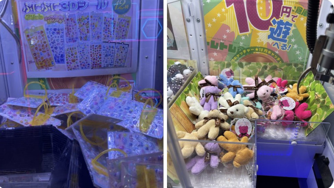 10円から40円までの間でクレーンゲームができる10円キャッチーコーナーの今日のおすすめはこちら