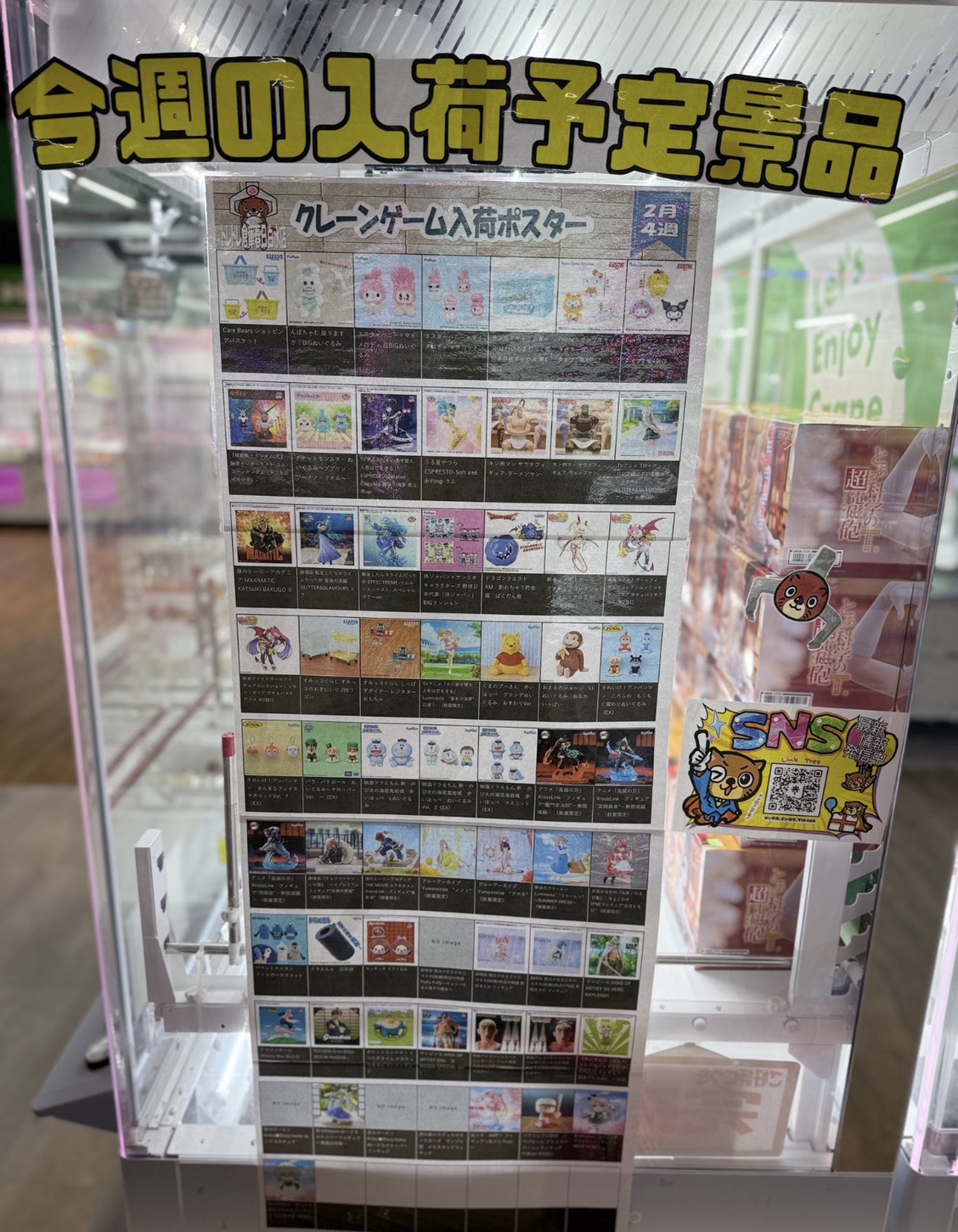 今週の当店の入荷表です👾#UFOキャッチャー #クレーンゲーム #春日市 アミューズ 2026年2月23日 今週の当店の入荷表です👾 大人気のフィギュアやかわいいぬいぐるみが沢山入荷予定です! ぜひ遊びに来てくださいね(入荷、完売情報ポストにはタイムラグがありますご了承ください♪ 確実な在庫状況をお知りになりたい場合は恐れ入りますが、お電話にてお問い合わせください🧌 【↓混み合っている場合繋がりにくい事もあります】 📲092-558-9700 各SNSはバナーをタップ!