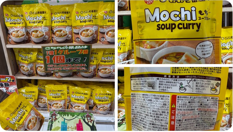 トースターで餅を焼いてお湯とスープの素を合わせたところに焼き餅を入れると美味しいお腹が満たされるスープカレーのできあがり♫