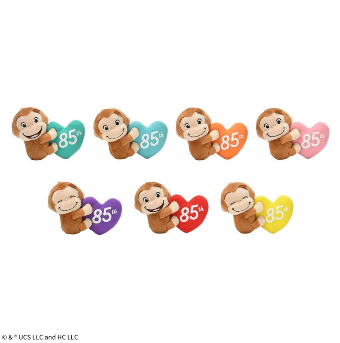 「おさるのジョージ」85周年を記念したデザインのマスコットです!カラフルなハートをハグした「ジョージ」がとってもキュート!
