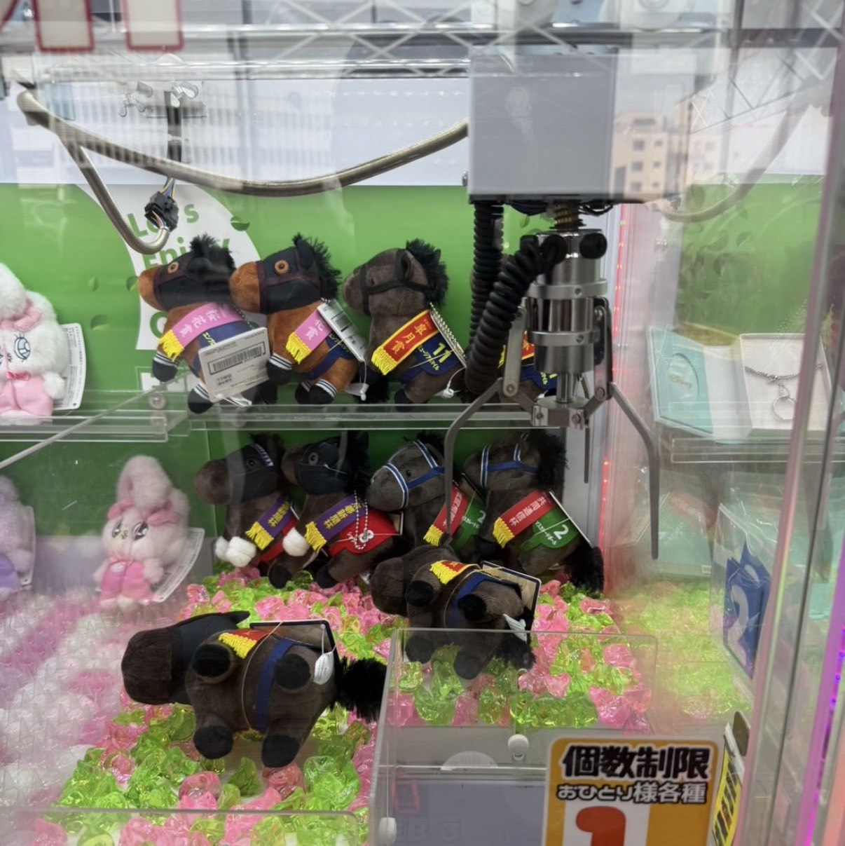 何度来ても景品がコロコロ変わるから飽きないし、また新しいものが欲しくなる♥playできる台数が多いからゆっくり遊べます🌸🎀🍇🌹