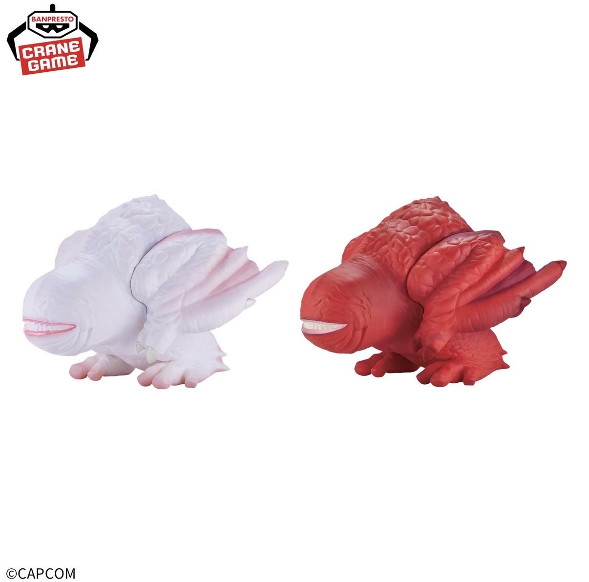 かわいいとかっこいいを兼ね備えたデフォルメフィギュアブランド「鎮座獣」に、シリーズを通じてファンに愛される不気味なモンスター、奇怪竜フルフルが登場!フルフルの特徴である、鱗のないブヨブヨした表皮と印象的な口にこだわって造形。純白の原種と、対照的に真っ赤な体を持つ亜種の2種ラインナップでの展開です。