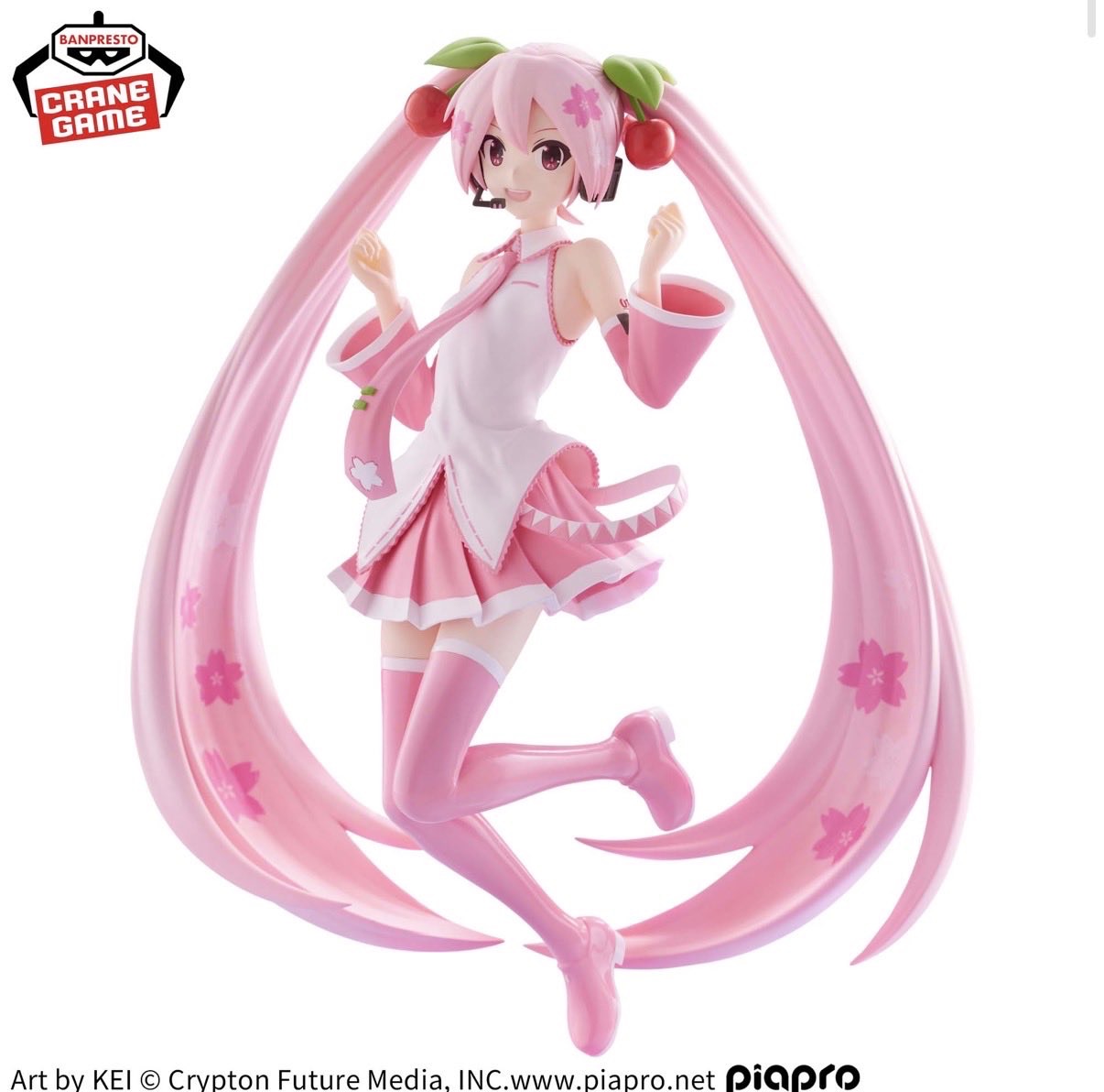 「BANPRESTO EVOLVE」とは・・・ひとつの形にとらわれず進化、拡大を続けていくバンプレストの美少女フィギュアシリーズ。イラストレーター「KEI」氏が描き下ろしたイラストをもとに、桜ミクが軽やかに飛び跳ねた姿をプライズ化。クリアパーツをふんだんに使い透明感あふれるフィギュアとなっています。ふんわりとひらめくネクタイや衣装、ボリューム満点のツインテール、細かい箇所まで桜ミクの愛らしさを表現しています