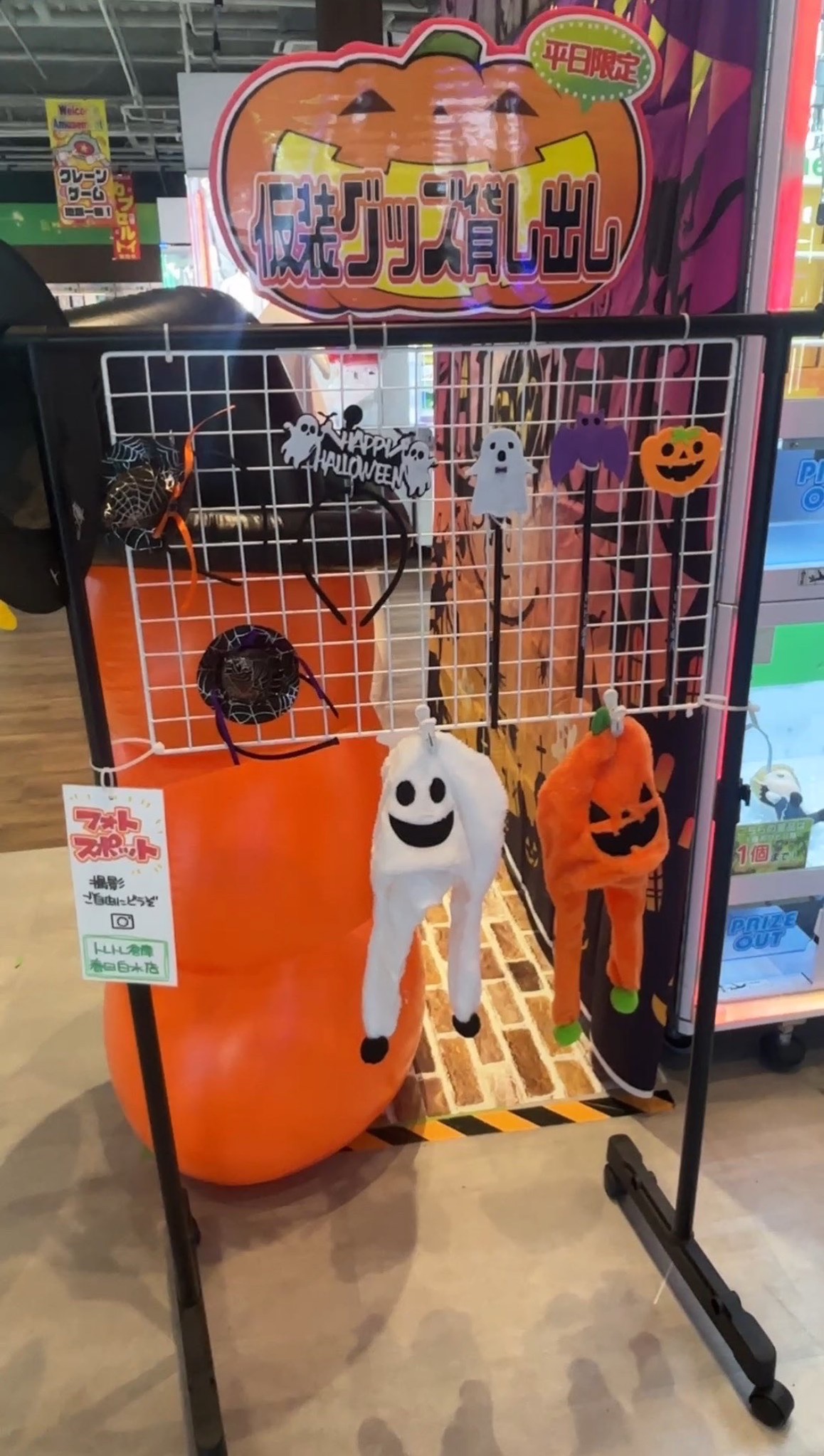 平日限定ですがハロウィンブースでフォトジェニックな演出ができるように無料で仮装グッズをお貸し出ししています!#ハロウィン #イベント #春日市#Halloween #仮装 #UFOキャッチャー